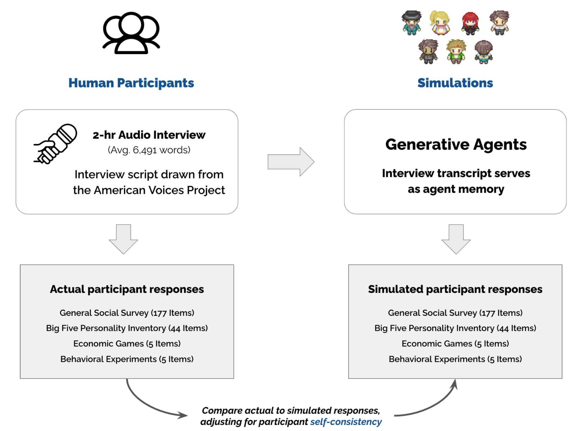 Human societies are complex systems. Our institutions, platforms, and policies rest on assumptions about how people perceive, decide, and act. I am a computer scientist who builds societal simulations to test—and challenge—those assumptions so we can better reason about high‑stakes decisions. My research introduced generative agents, language‑model‑based actors with memory, reflection, and planning, and developed methods to ground these agents in real‑world data and validate their simulated attitudes and behaviors against ground truth. I run population‑scale simulations with agents representative of real‑world populations.